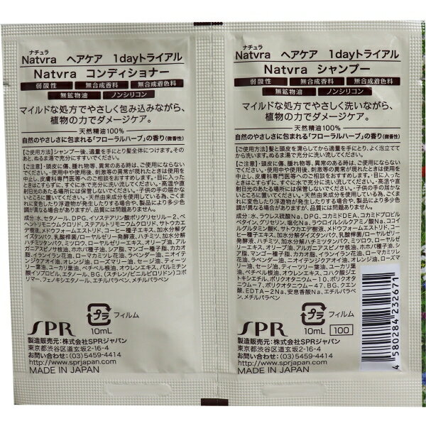 商品特徴一覧shampoo、4580284-1、4580284232671、通信販売、通販、販売、買う、購入、お店、売っている、ショッピング【Natvra(ナチュラ) ヘアケア ノンシリコン 1dayトライアルセット 10+10mL】広告文責(有)イースクエアTEL:0120-532-772株式会社SPRジャパン個装サイズ:118X110X1mm個装重量:約23g内容量:10mL+10mLケースサイズ:26X13X26cmケース重量:約3kg製造国:日本【発売元:SPRジャパン】【商品区分:化粧品】【成分】★